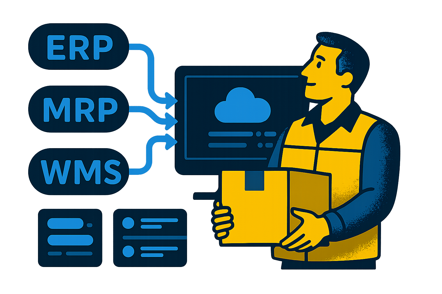 - File-based or real-time integration with ERP, MRP, MES, or warehouse systems