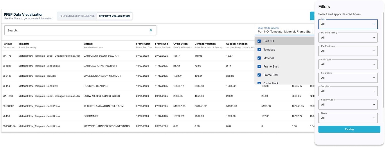 Go deeper into the data. PFEP connects every detail—demand shifts, supplier metrics, replenishment rules—so nothing slips through the cracks.